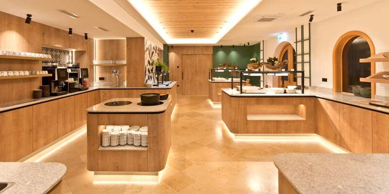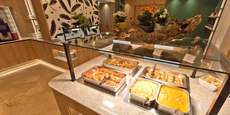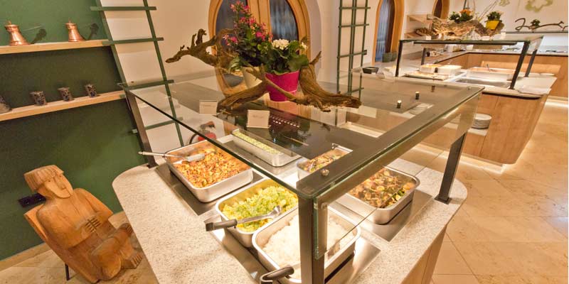 Unser reichhaltiges Mittagsbuffet offeriert eine große, abwechselnde Auswahl an Salaten, Fleisch-, Fisch-, oder Geflügelprodukten, sowie vegetarische wie auch vegane Speisen. Zum Buffet gehören auch Suppe und Nachspeisen.