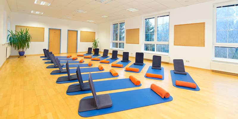 Flipcharts, Pinnwände, Leinwände, Videobeamer, DVD-Player, Mikrofon, Meditationskissen, Matratzen, Yogamatten, Decken, Pölster.